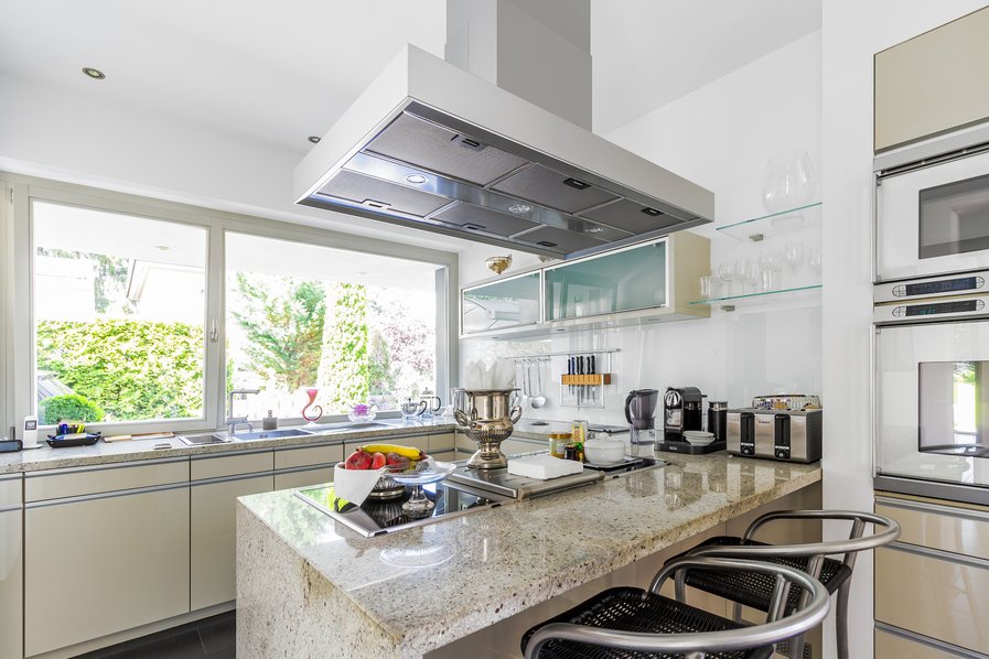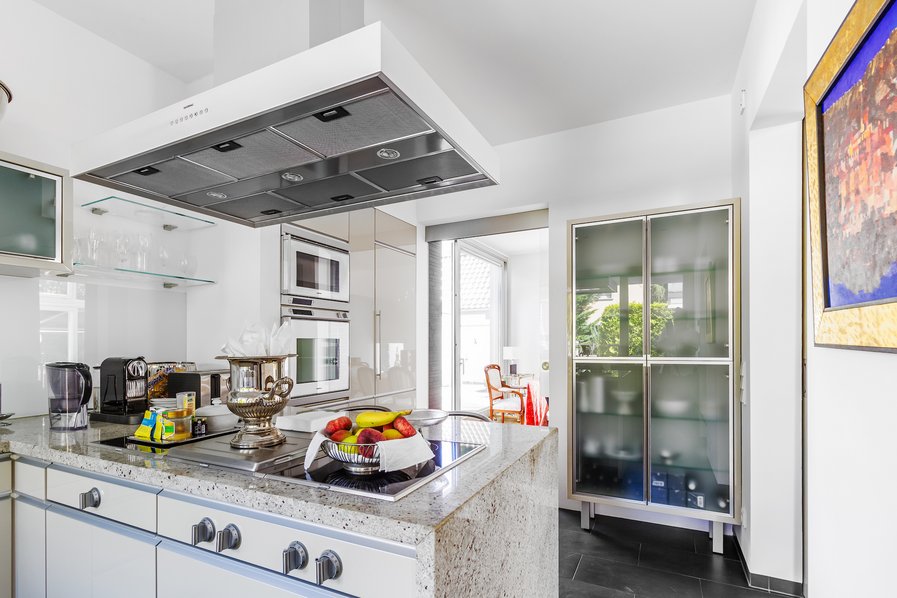 Hochwertige Einbauküche mit Granitarbeitsplatte, Induktionskochfeld und Geräten von Gaggenau