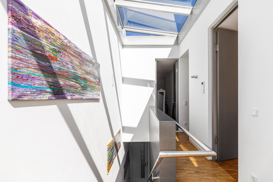 Das Obergeschoss überzeugt durch eine durchdachte und komfortable Raumaufteilung. Hier befinden sich ein Schlafzimmer mit Klimaanlage, ein großzügiges Masterbad mit Sauna, Rainshower-Dusche und Badewanne sowie eine separate Ankleide. Ein weiteres Zimmer mit Zugang zum Balkon, ein zusätzliches Zimmer sowie ein Flurbereich mit offener Galerie, der sich ideal als Arbeitsbereich nutzen lässt, runden das Raumangebot ab.