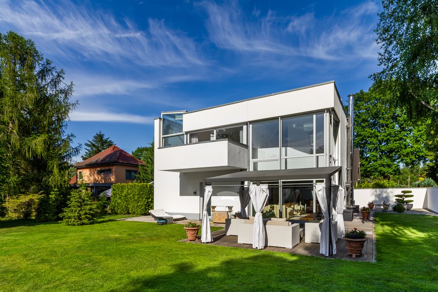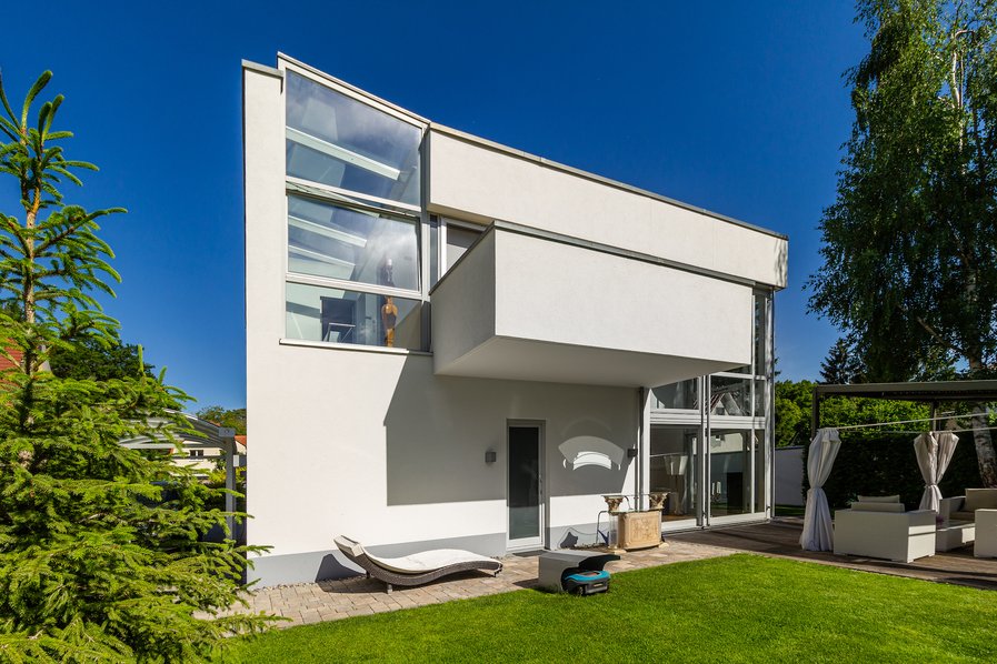 Schon beim Betreten dieser außergewöhnlichen Bauhaus-Villa spürt man die klare Handschrift moderner Architektur in Verbindung mit höchstem Wohnkomfort. Großzügige Raumhöhen, lichtdurchflutete Flächen und fließende Übergänge zwischen Innen- und Außenbereich schaffen ein einzigartiges Wohngefühl, das sowohl stilvoll als auch repräsentativ ist.