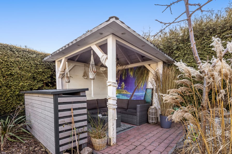 Der traumhaft angelegte Garten präsentiert sich als echte Wohlfühloase und lässt keine Wünsche offen. Hier befinden sich ein Pool, eine Sauna, ein Hot Tub, eine Outdoorküche sowie eine große Garage mit integrierter Werkstatt und separatem Garten-WC. Die verschiedenen Rückzugs- und Aufenthaltsbereiche schaffen ein außergewöhnliches Maß an Privatsphäre und Lebensqualität.